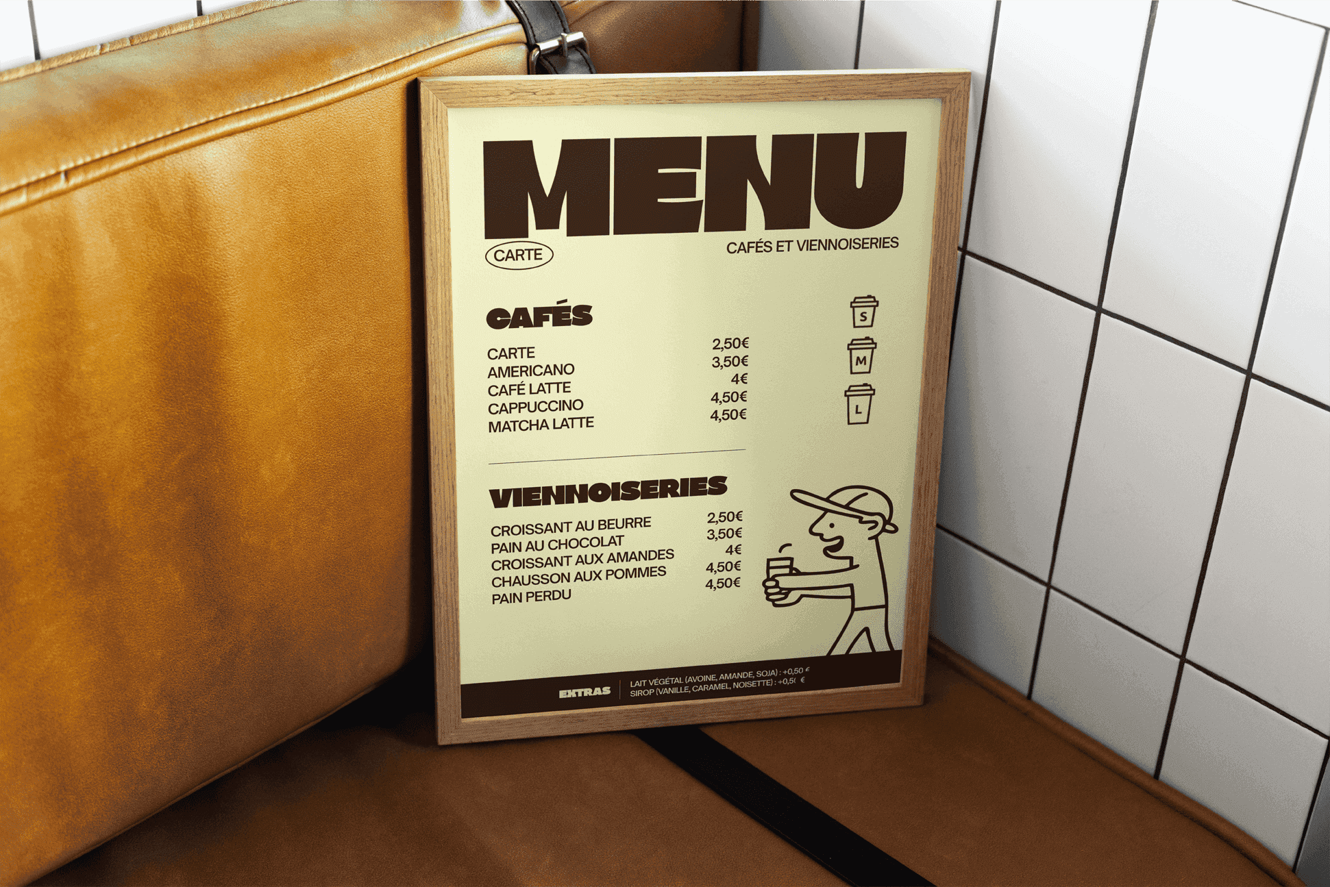 Mon objectif était de créer un univers graphique moderne et légèrement décalé, reflétant un lieu de vie où se mêlent convivialité, style et bon goût. J’ai conçu l’ensemble des éléments visuels, du logo à l’emballage, en passant par les supports de communication, pour offrir une expérience cohérente et impactante.