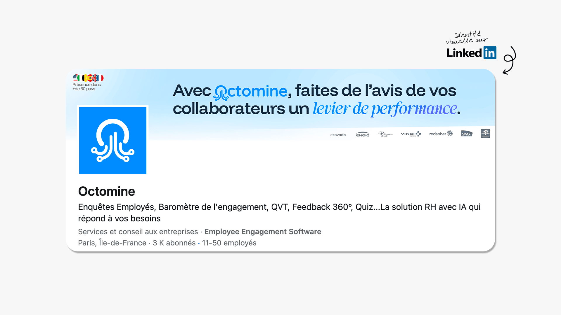 Octomine est une plateforme SaaS dédiée à l’évaluation du bien-être des collaborateurs en entreprise, via des enquêtes personnalisées, du feedback 360° et une analyse en temps réel, le tout dans le respect du RGPD.